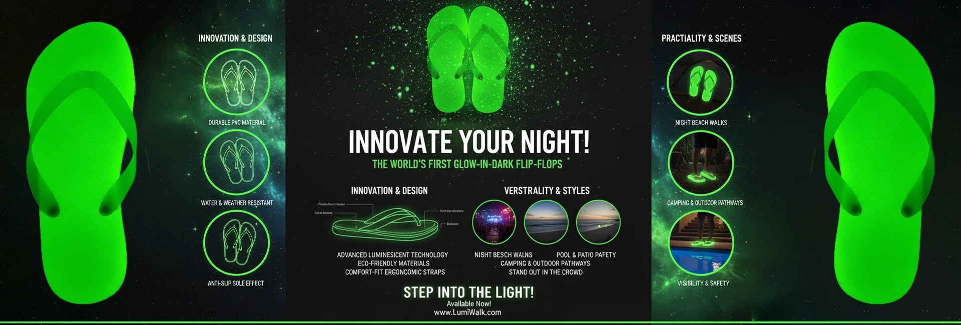 شباشب مضيئة بالجملة تتوهج في الظلام للشاطئ وحمام السباحة والفعاليات الليلية - نعال مضيئة صديقة للبيئة من مادة PVC